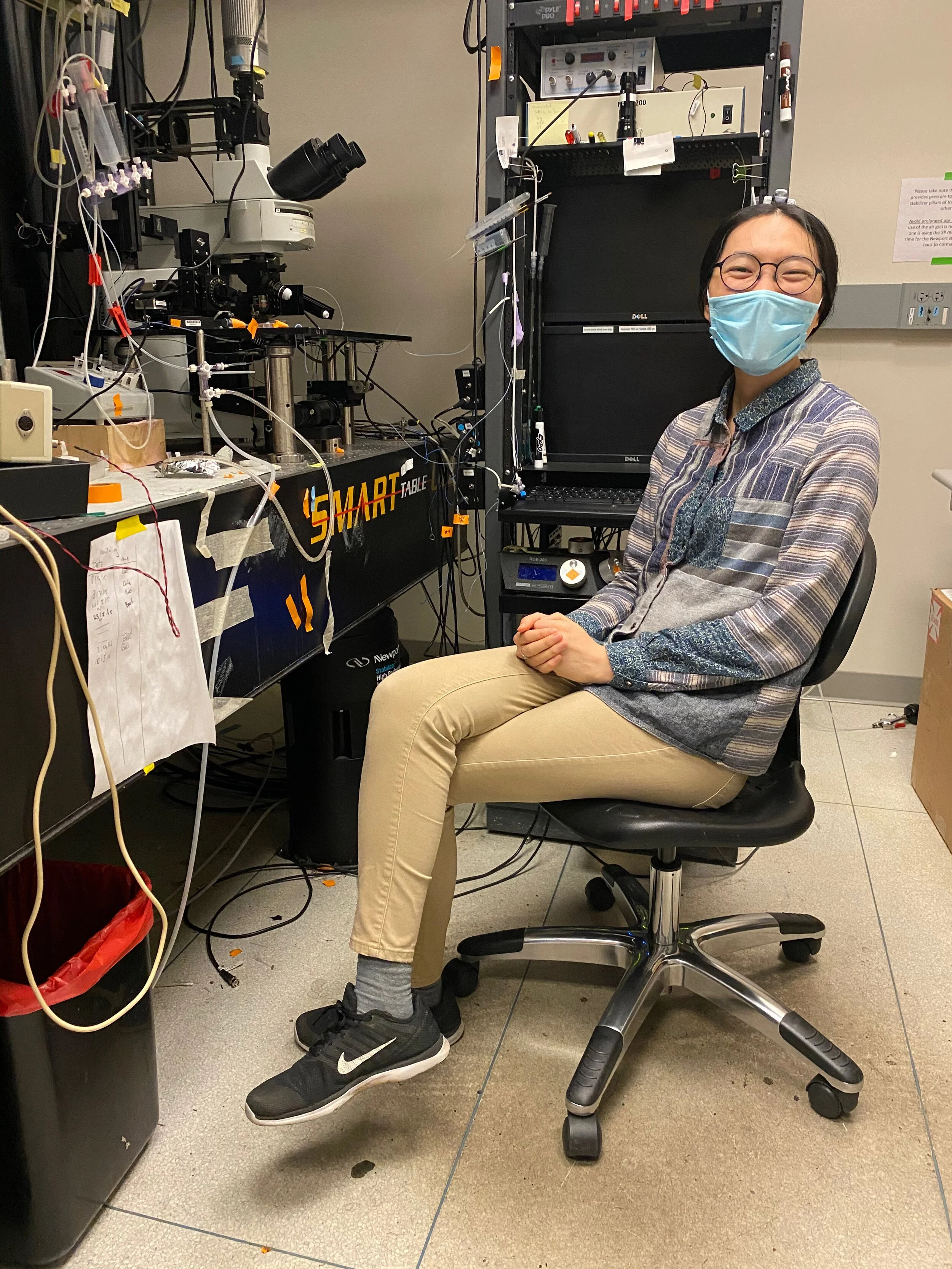 Yang having fun at the LSPS rig Lei Ma, post-doc in collaborating Zhong Lab, posing with one of his experimental subjects Landon happily analyzing data at her second floor desk Evan hard at work in the third floor bench and desk space Mike showing off his moves in the Vollum animal room Danny interrogating scientific mysteries at the 3rd perfusion hood Haleigh working at her desk on the second floor Collaborating PI and Mao Lab neighbor, Haining Zhong, taking an afternoon tea break Danny and Julian pose by the vibratome Evan and Ian, at it again in the third floor lab space Tianyi enjoying an iced coffee on a sunny day